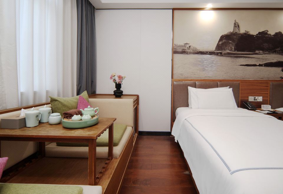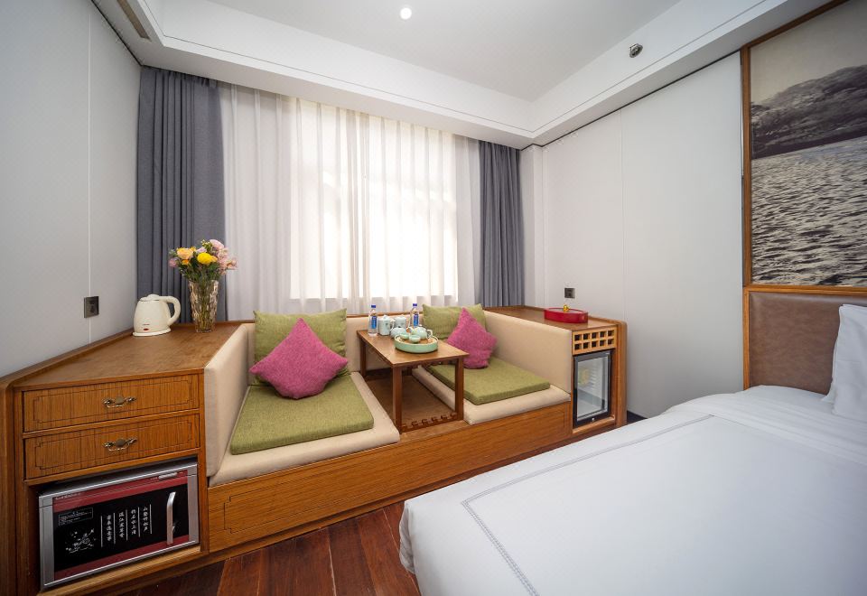 精致大床房|四合一沙发+小冰箱+闽南茶具+明窗